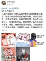 全球性活动。睡眠是人体的一种主动过程,可以恢复精神和解除疲劳。充足的睡眠、均衡的饮食和适当的运动是国际社会公认的三项健康标准。
